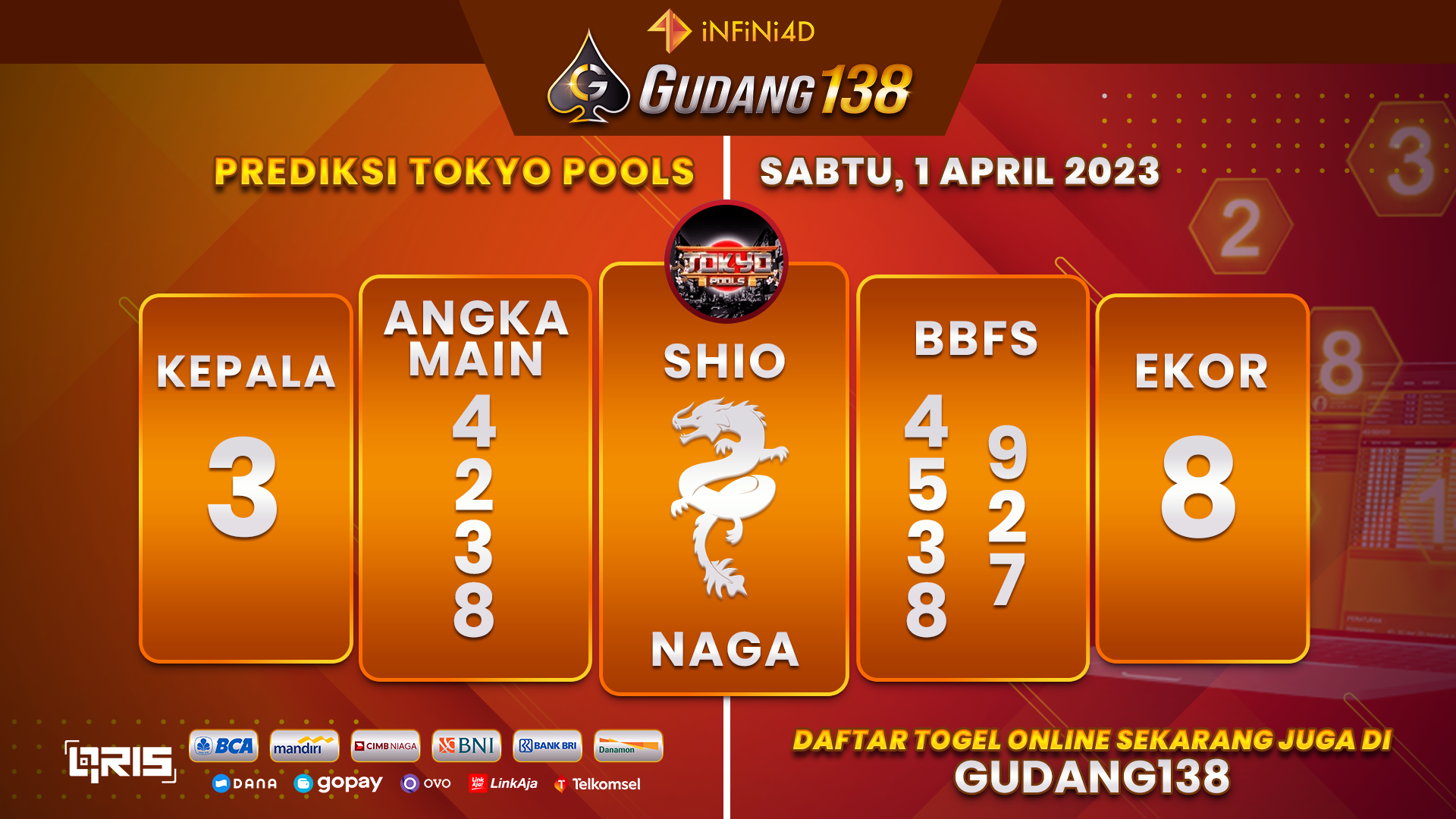 Langsung saja kami berikan sedikit bocoran angka prediksi dari togel Tokyo ini.